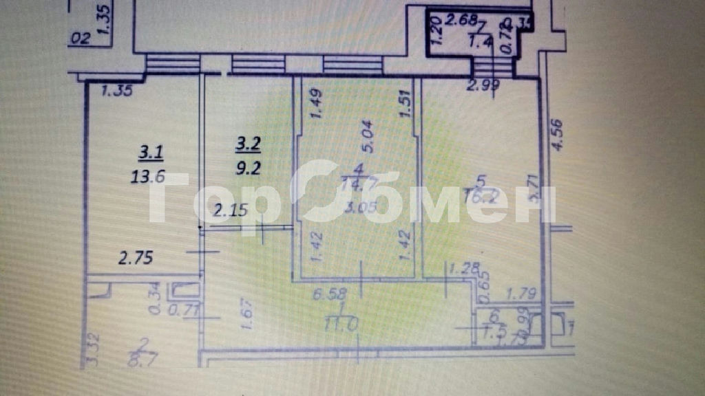 Комнаты: 14.7 13.6 9.2 м2
